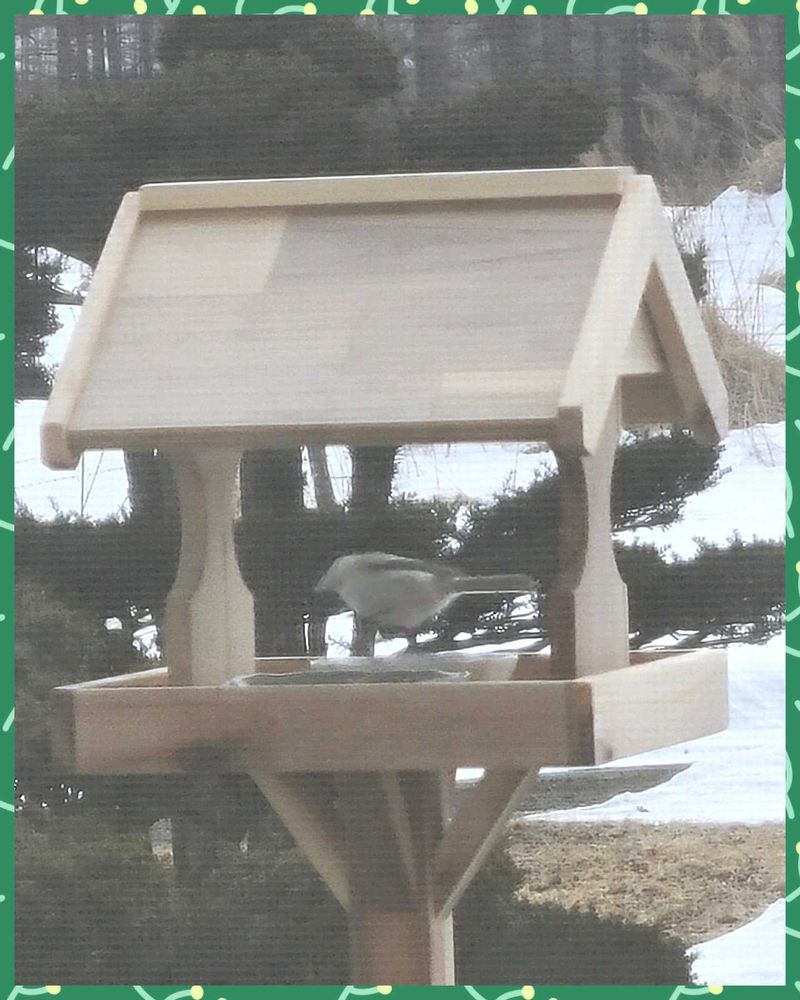ベランダウッドデッキに取り付けた餌台に白い小鳥が来ました🐦