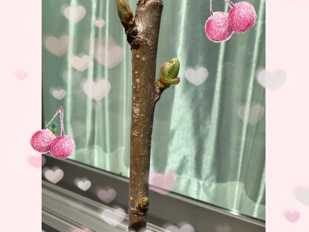さくらんぼ🍒の芽ももう少ししたら葉を展開しそうです🎵花が咲くまで何年かかかるようですが、さくらんぼ栽培初めてなので楽しみです🥰🍒