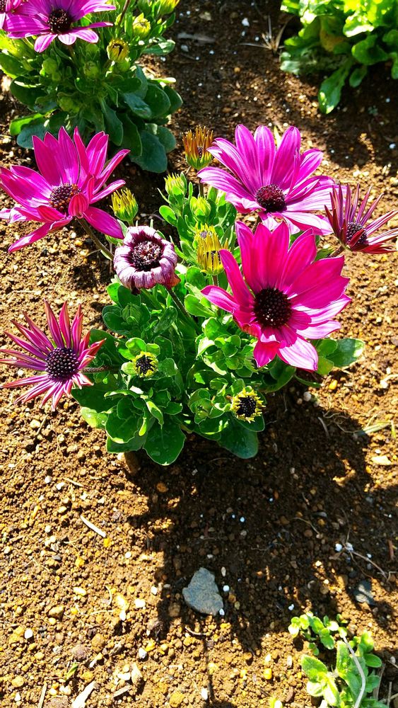 今日は通院日でした。病院の花壇には綺麗なティジーとオステオスペルマムが植えてありました。空は青空でとても良い天気でした。花達もとても嬉しそうでした。昨日までは雨がふっていたので今日の花達を見てたら心なしかいきいきしているように感じました❗️