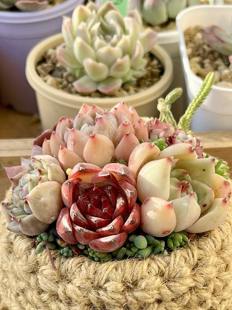 寄せ植えも編み編みカップも、どちらも素敵🥰