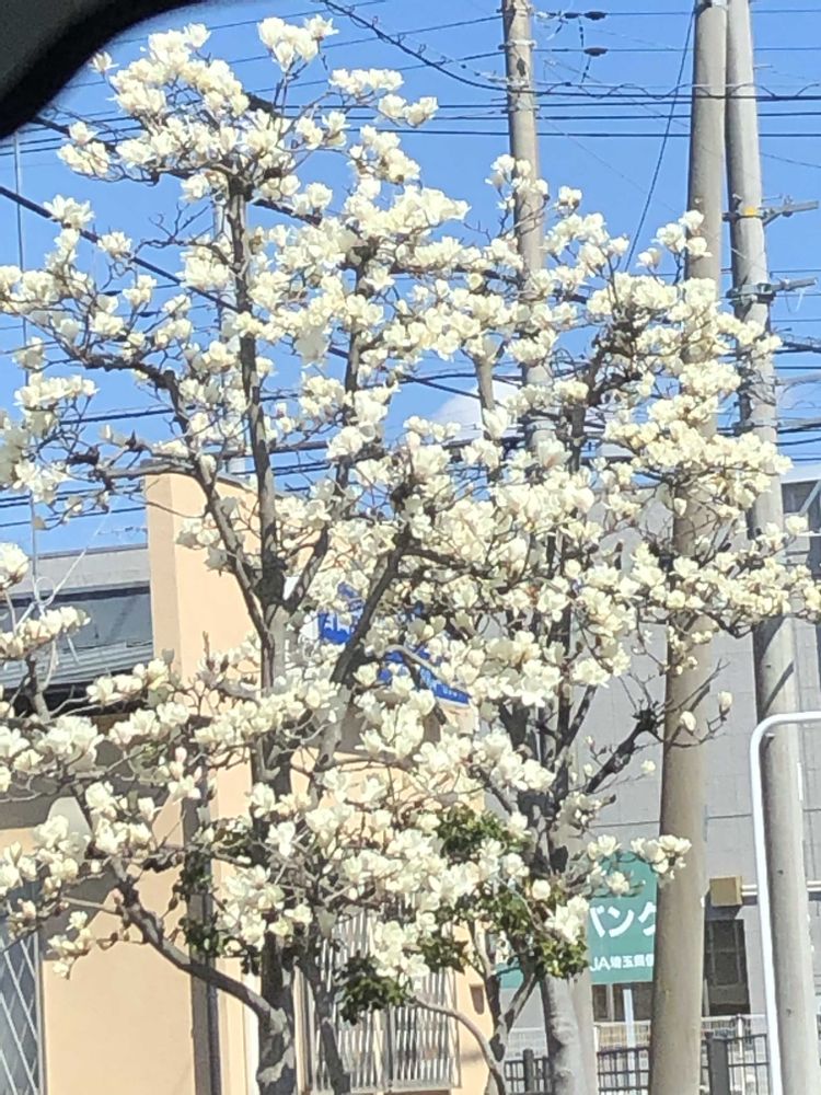 道路沿いの白蓮が、