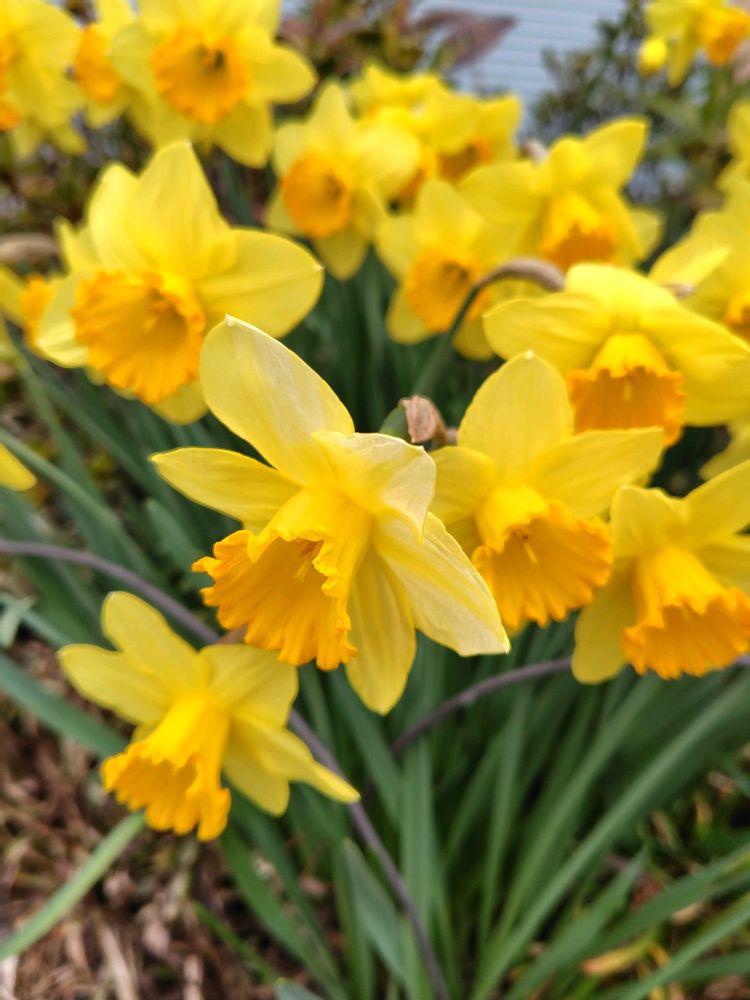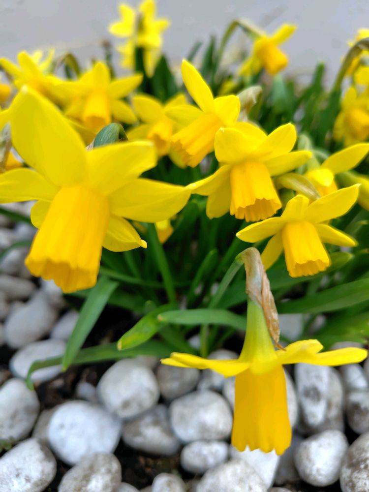 今日出先で見たミニ水仙(背丈12㌢位)💛と先日見た立派なラッパ水仙(背丈40㌢位)💛