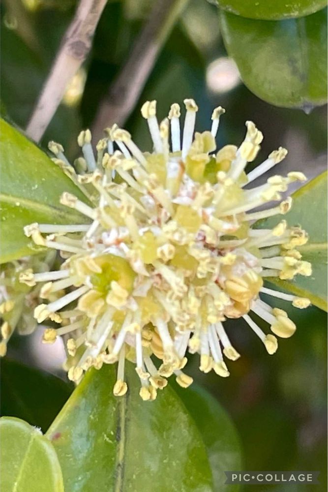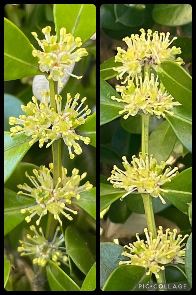 実家のツゲ、ほんと遠目には花が咲いてるなんて全然わからないね👀✨
