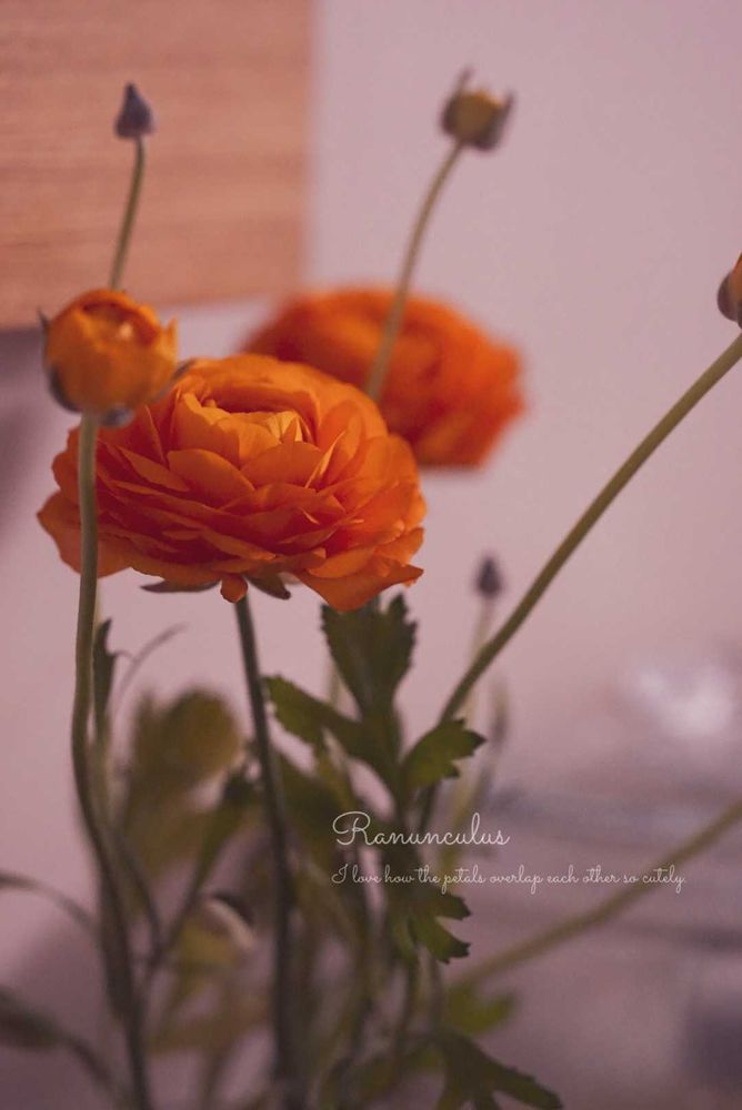 白いラナンキュラスを結婚式のブーケにしたかったくらいラナンキュラスは好きなんですが、このオレンジが1番元気で、惹かれました🧡