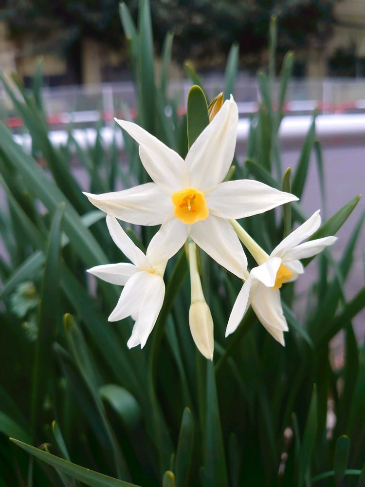 4️⃣水仙シャープな形の花弁🤍💛スッキリしてますね😊ワンコ散歩で出会いました🐾