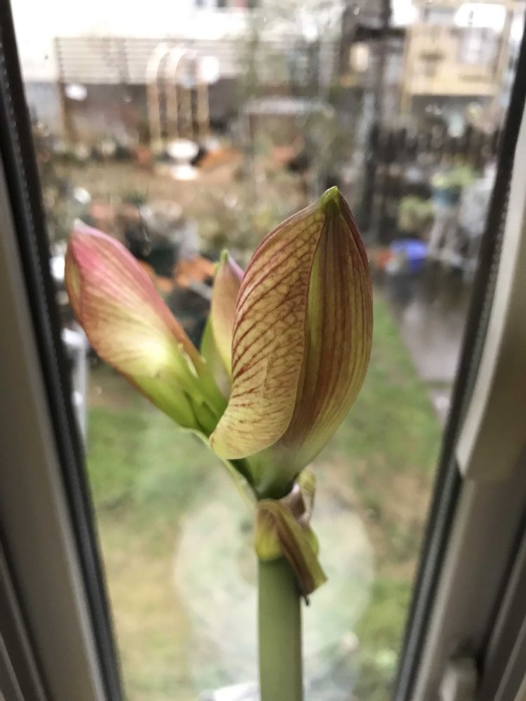 つい先日までグリーンの膨らみが、油断した隙に中から3つの蕾が😳