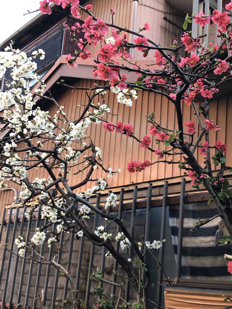 家人が不在のまま、紅白の梅?が咲いています。💐