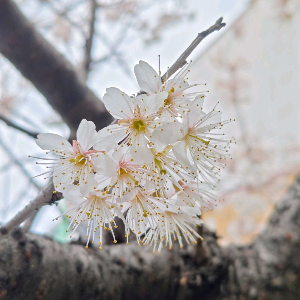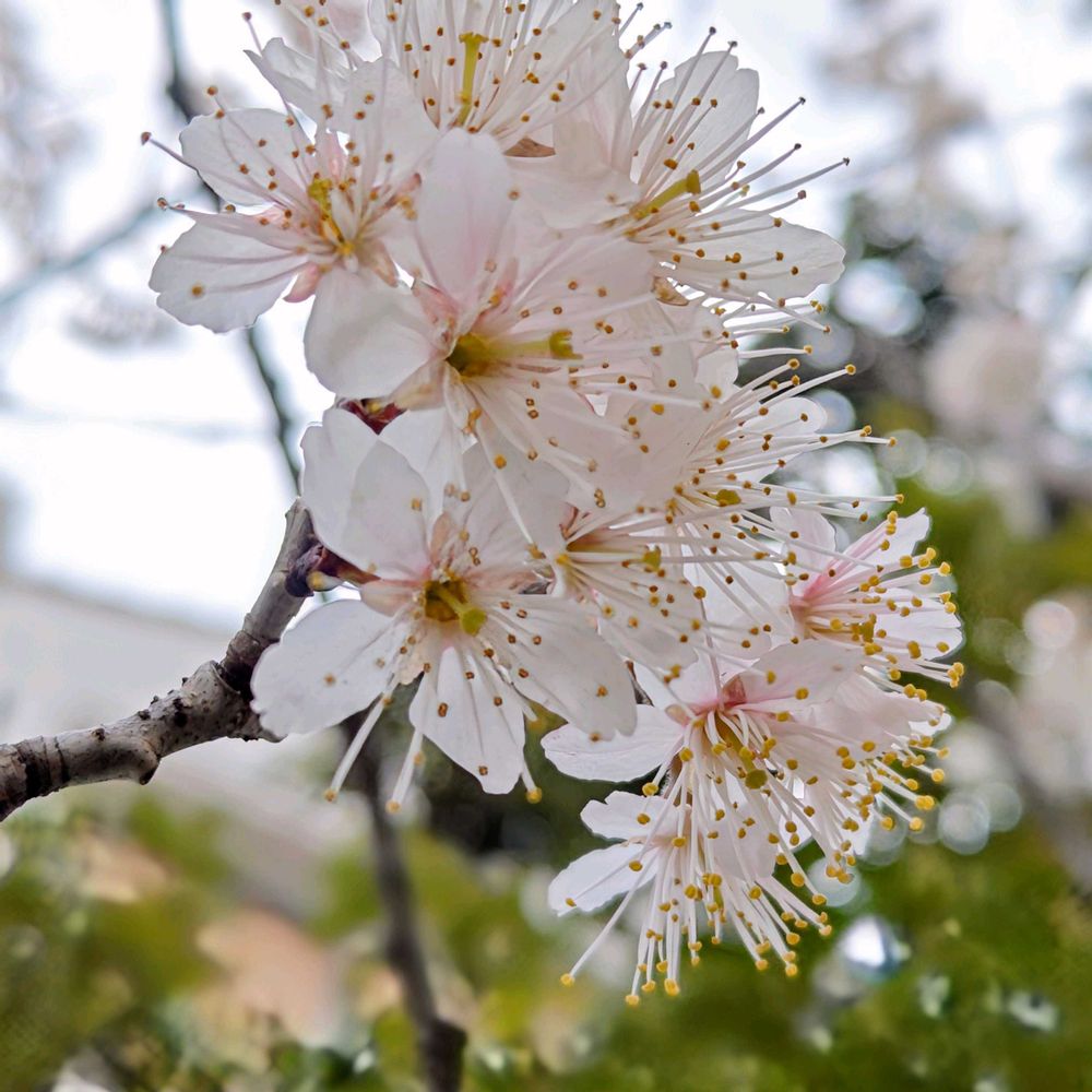 敷地内に植えられた、サクランボ🍒の木の花🌸が満開です。Googleレンズはシナミザクラと。