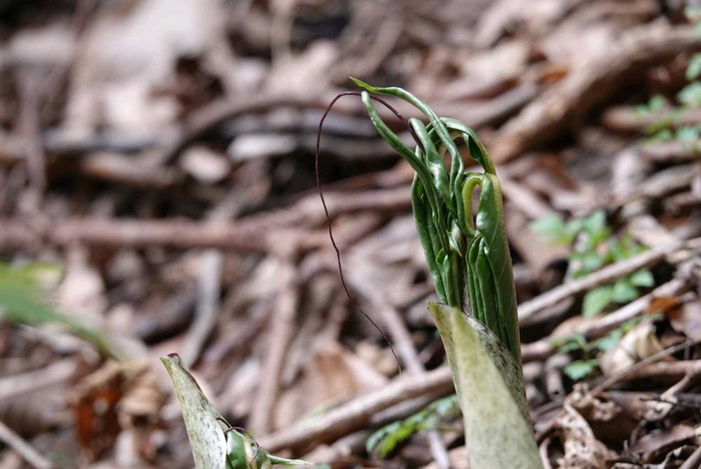気の早いウラシマソウ(多分)は早くも釣り糸を垂れています。こんなに早く釣り糸を出すのは初めて見ました。(5枚目)