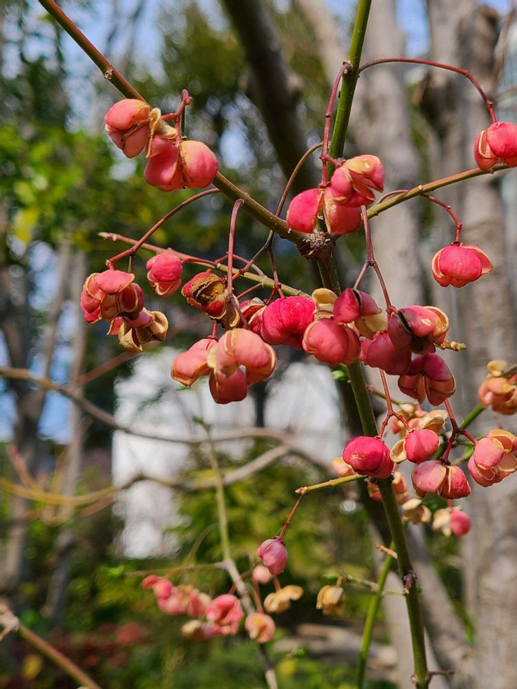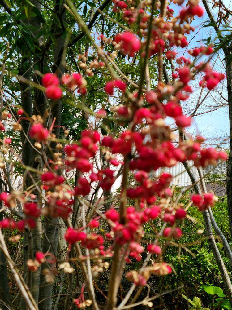 マユミの実が真っ赤でしたよ💖😊ちょと赤くなるのは遅いですね😲 寒暖差のある時期なので赤身がましたのかしら☺️