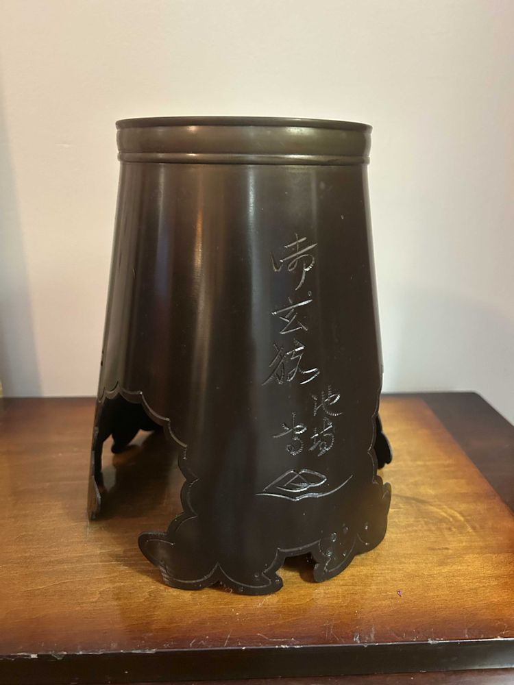 花器: 日本製、池坊で伝統的な型の生花を生けるために、池坊専明41世によって草案されたそうです。