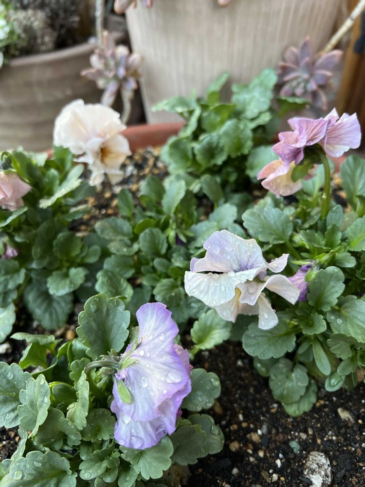 次々と種蒔き組のパンジー、ビオラが咲き出し、我が家の庭も華やかに