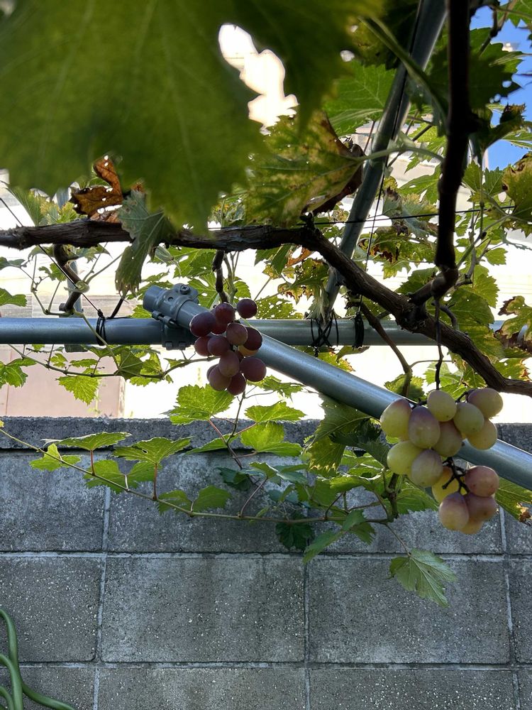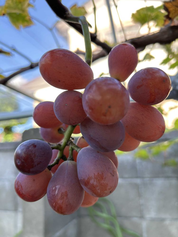 昨年、植えて2年目のピオーネ☺️6総収穫出来ました💕まだ小さいけど、ジベルリン処理して種無しに成功😅来年からまた楽しみが一つ増えました。