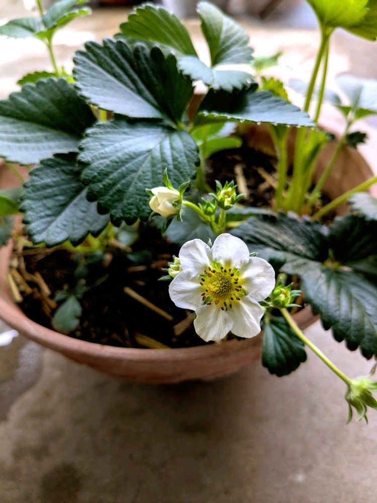 ついに〜〜イチゴ🍓の花が咲きましたよ🙋2~3日前から葉っぱが起き上がってきた感あったんだけど茎が伸びてきて花をつけました🌿このままたくさん実が成るといいですね~😺
