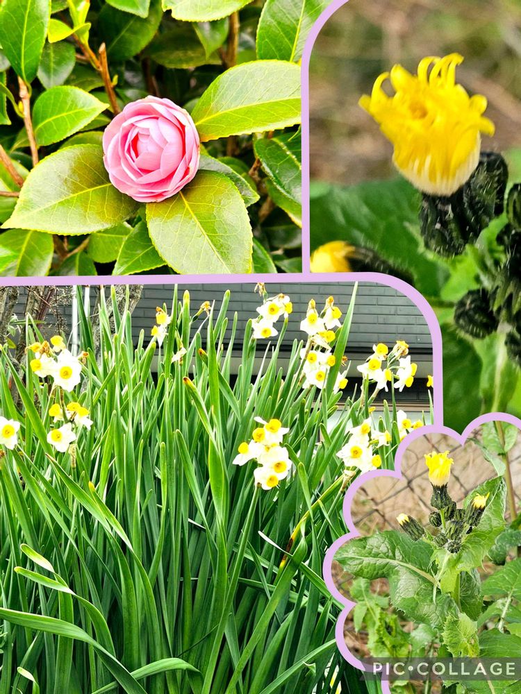 4️⃣水仙、ピンクの椿、ノゲシに出逢えてHAPPYな日になりました✌️😄ガンバロー\(^^)/