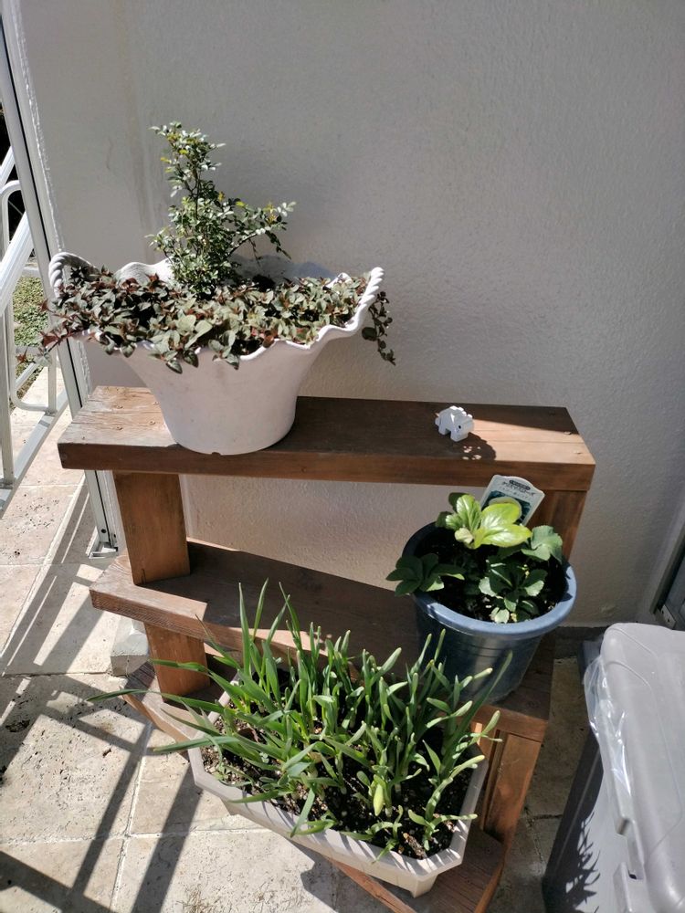 今日はいい天気なのでせっせと庭掃除と、殺風景な棚をレイアウト。