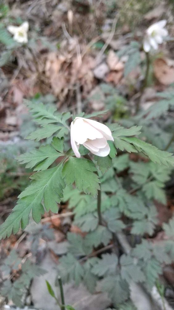 奥三河の低山でキクザキイチゲが開きだしました。この地方は白のみ。これから大きく開きます。もちろん太陽が好きな山野草なので天気の良いお昼頃に出かけます。🌸💮❀🌼、🤗