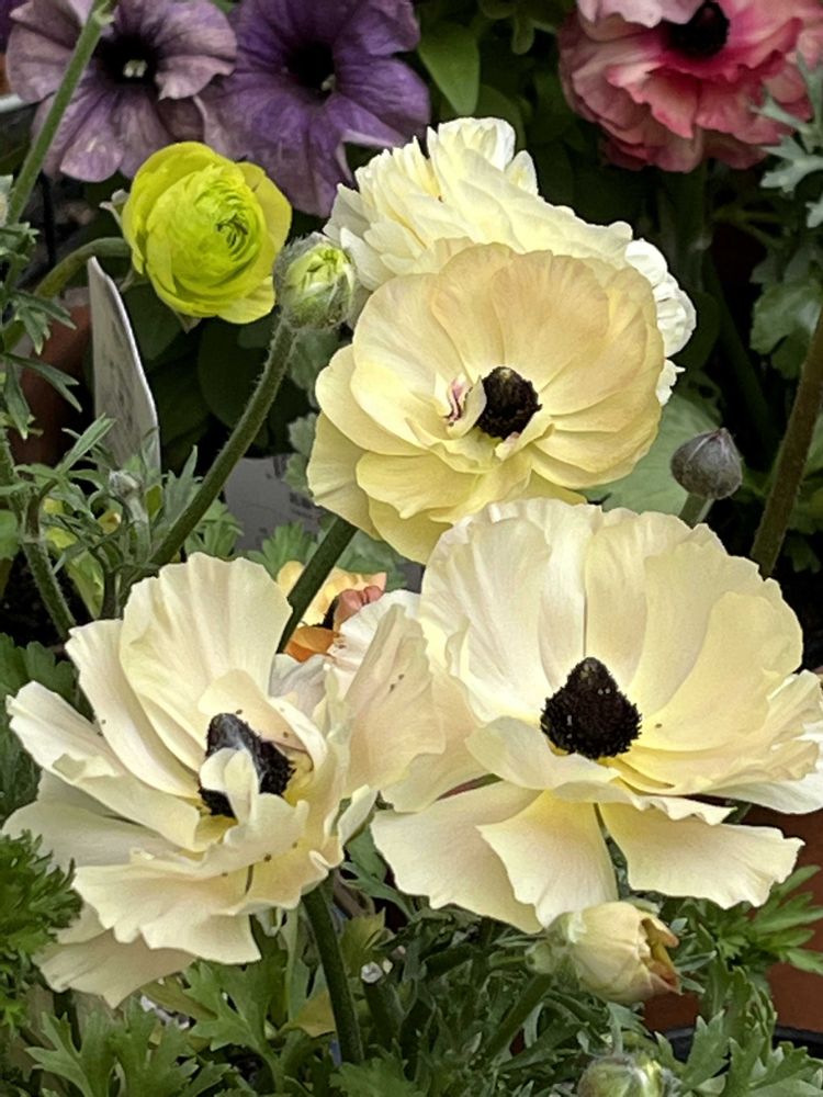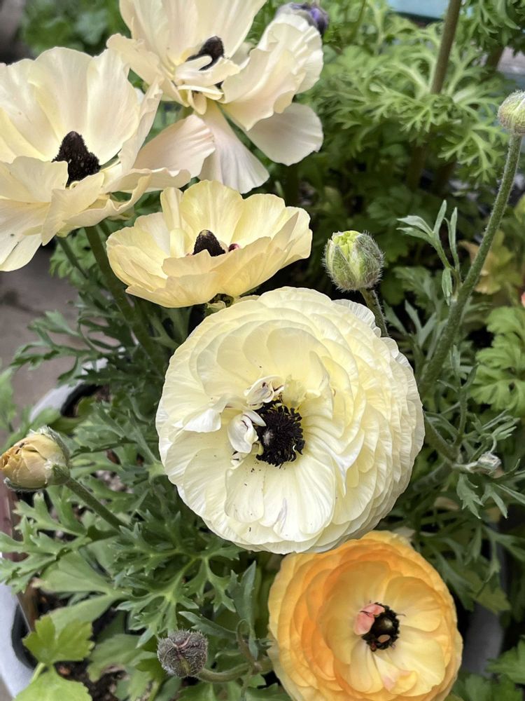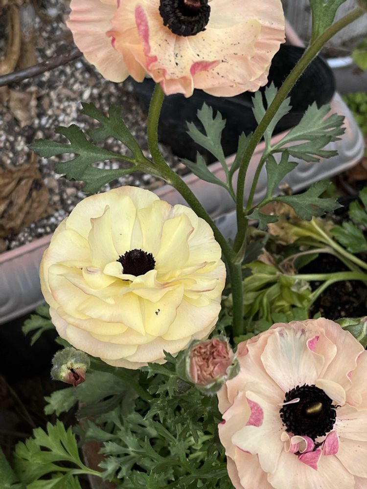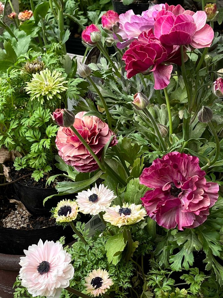 ❶〜❸ラナンキュラス エトワール✨✨花びらは重ねが少なくなって、ヒラヒラしてますネ💃❹ラナンキュラス トワイライトレディ✨✨こちらもヒラヒラ💃❺こちらのトワイライトレディはモリモリ😆🕺🏻