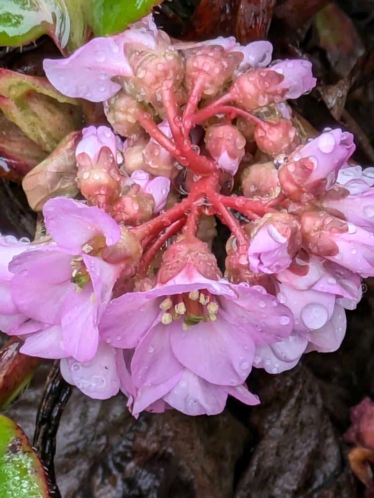 イワヤツデ数年ヘソを曲げて咲きませんでしたが 昨年地植えから鉢に移して 置き場所を変えたら咲きました