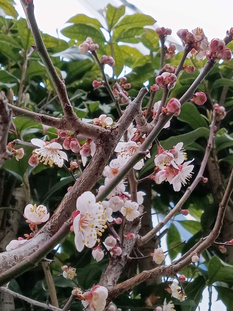 お庭の梅のお花が咲き揃いました〜淡いピンク色が、可愛く綺麗です✨💕💗🩷💫🐝🦋