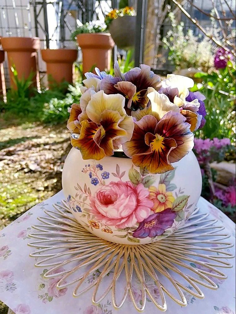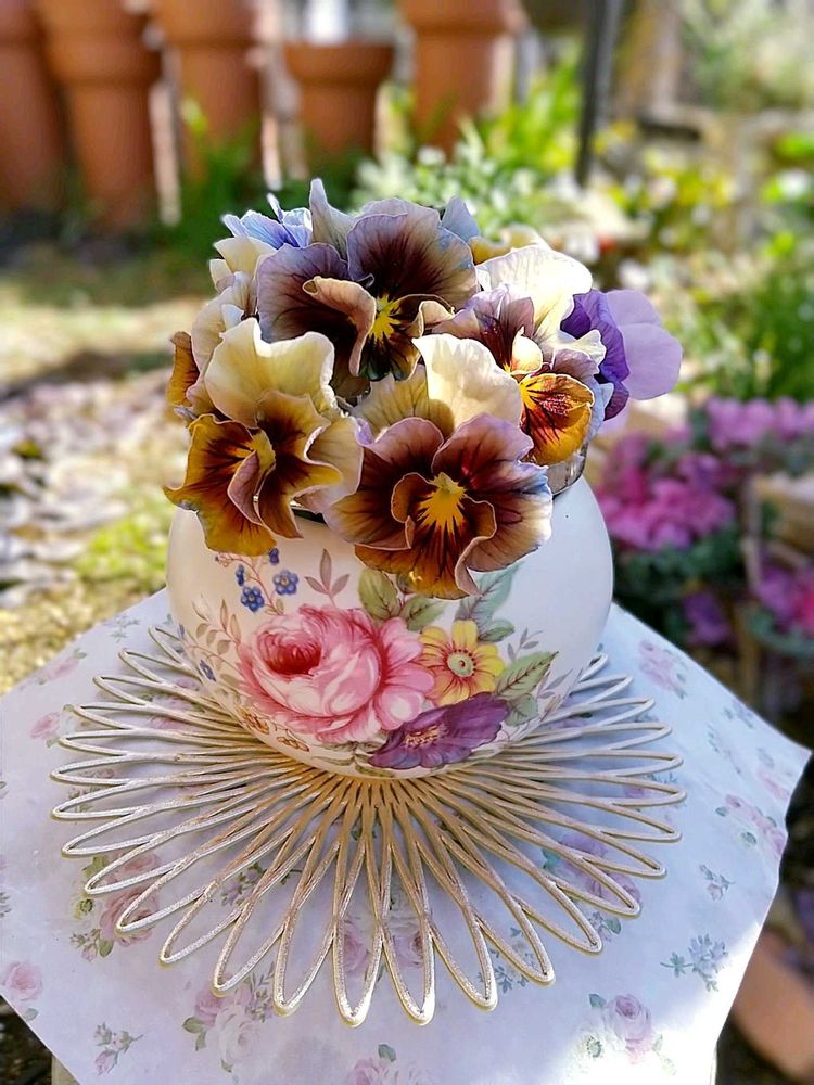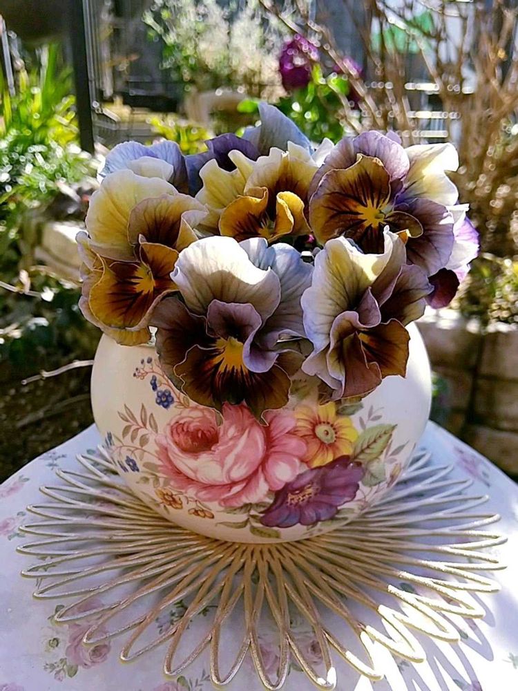 シックなアンティークカラーのビオラ、綺麗です~💜🤎🧡