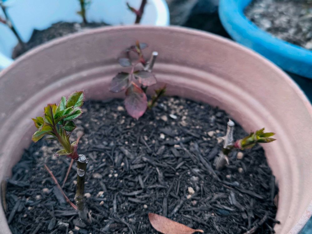 去年の春に花後剪定したついでになんとなーく挿してたバラの枝たち