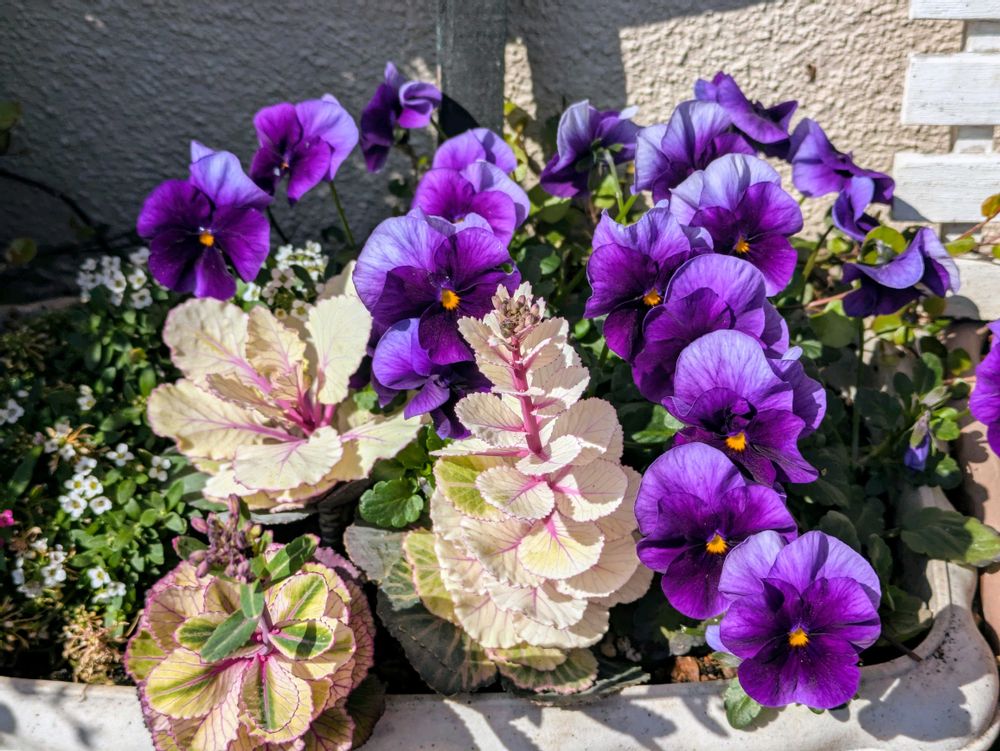 寄せ植えの葉牡丹とビオラ~ꕤ.•葉牡丹がソフトクリームみたいになってる〜🍦🤗