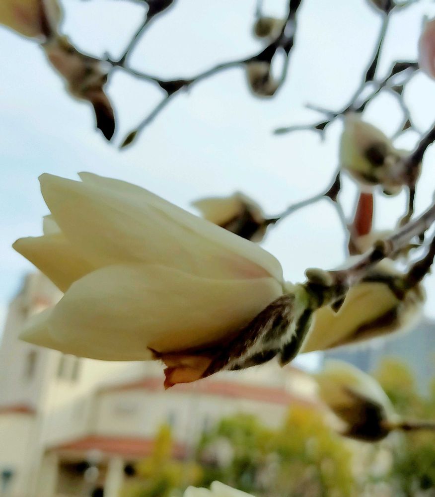 ハクモクレンが咲き始めてました。