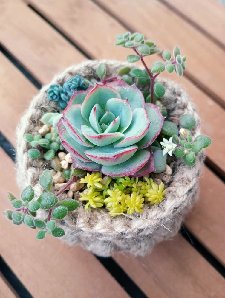 でも、鉢に対してまだサイズが小さかったのでセダムたちを追加💕