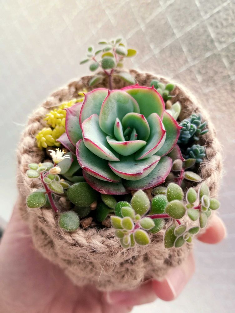 麻紐の鉢がどうしても欲しくて、編み物苦手でしたが作ってみました😊