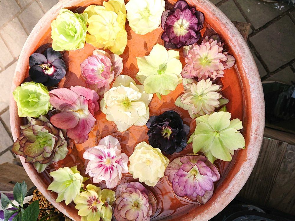 心を和ませてくれるパステルカラーの花手水🌹〜ですね。