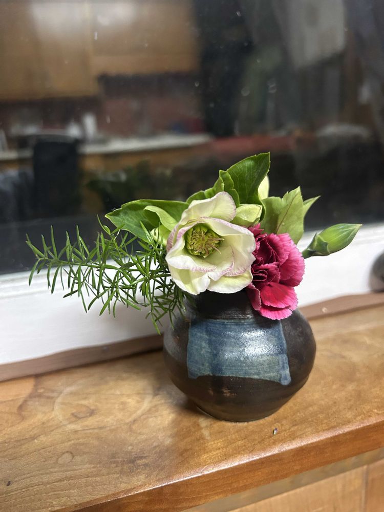 おはようございます。クリスマスローズ、家の中で楽しむのも良いですね!丸い小さな花器もあるので、真似させていただきます。フォローありがとうございます。フォロバいたします🐈