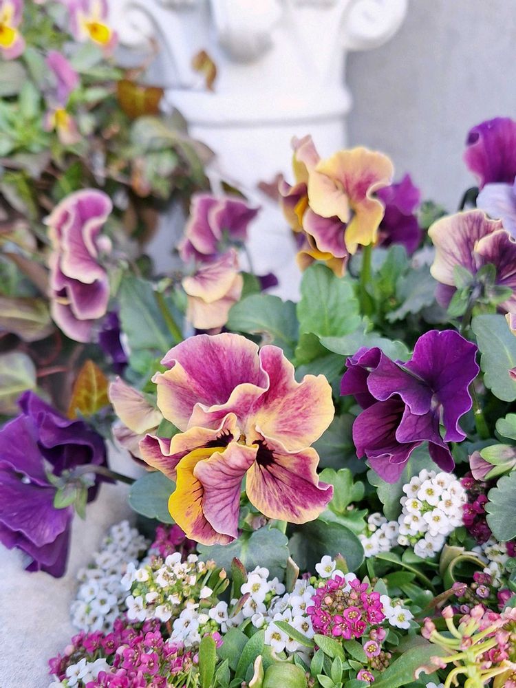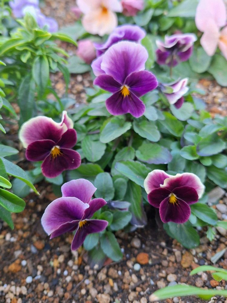 かわいい色のパンジーやビオラですね♡見ていて癒されます☺️
