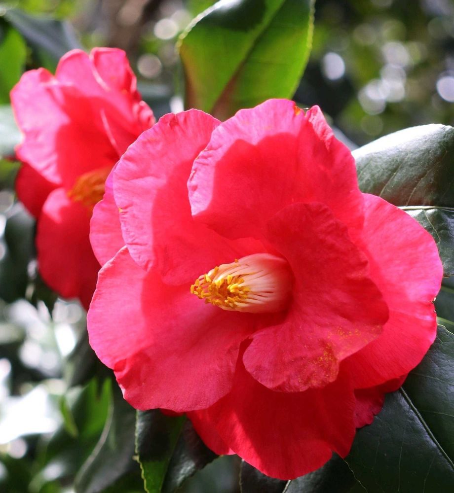 とても大きな綺麗な花でした。葉もつやつやで沢山の花が大きな木についていました。