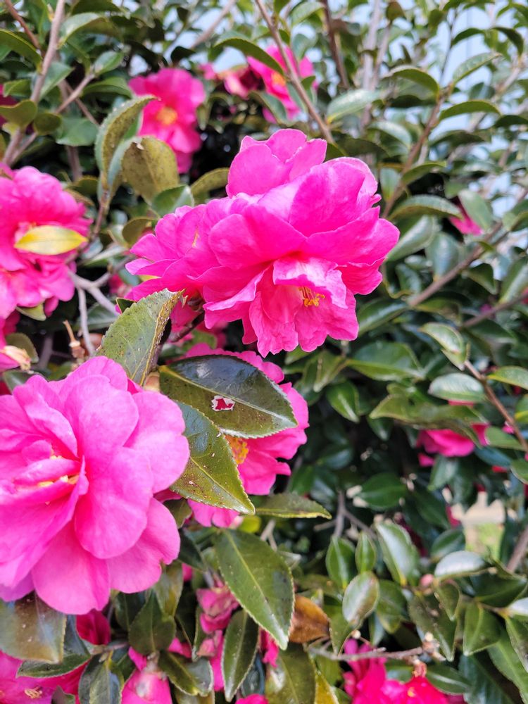 ④🩷のサザンカ陽射しを浴びピカピカ花びら✨✨✨🌸