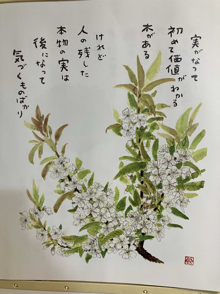 最後は星野富弘さんの今月のカレンダー🗓️の絵が、さくらんぼの花という題で描かれたものです♪