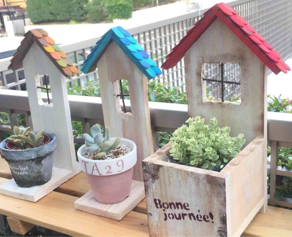 多肉な彼女さんの作品をちょっとリメイクしたんです。皆さん色々リメイクされていて、色んなバージョンがありますよ😊