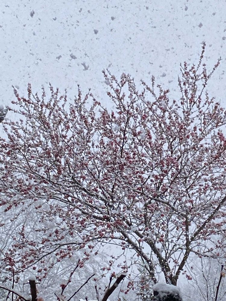 明け方の雨が霙に替わり、今は大きな牡丹雪です❄️窓から見える景色も刻々と変わり更に降り積もっています。