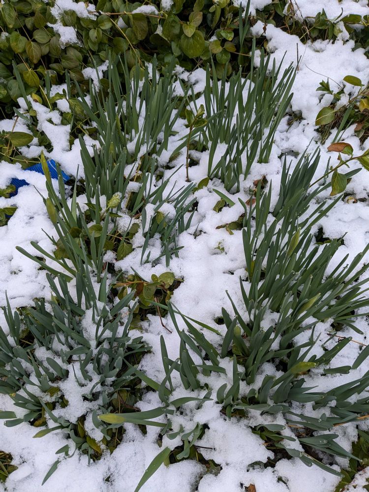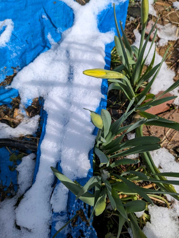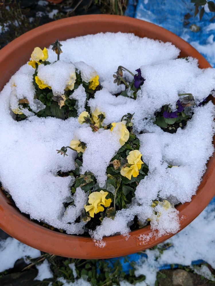 ビオラ、水仙が雪に埋もれてますが、元気モリモリです🤗