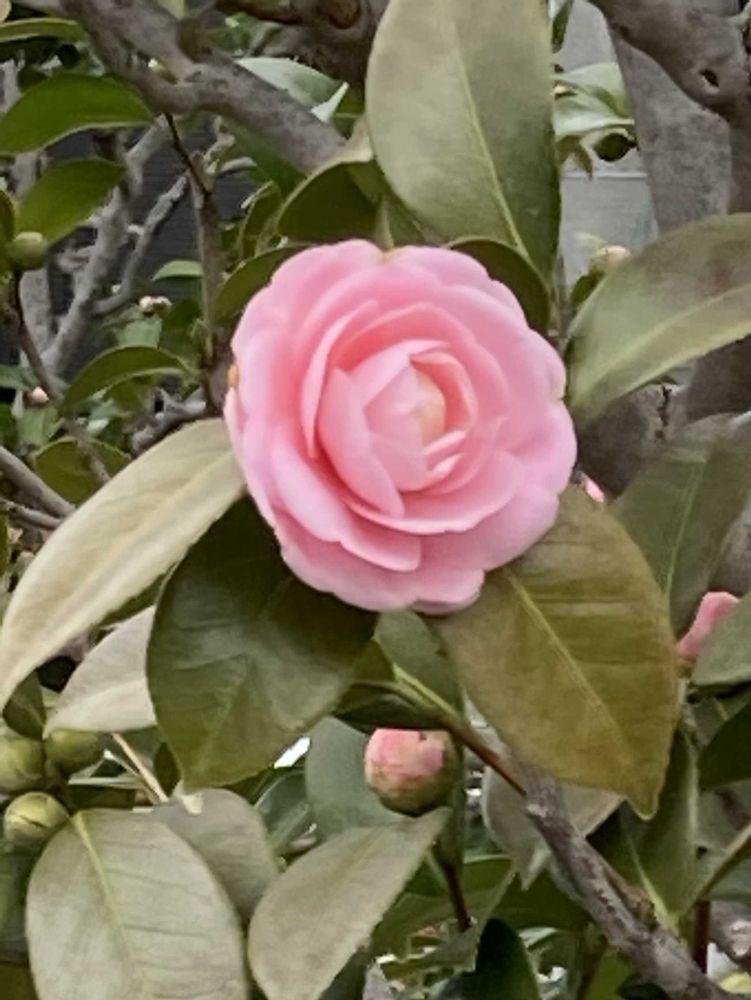 オトメツバキ(乙女椿)の花があちらこちらで咲き出してます。今年は寒暖差があるので咲くのが遅いですね。