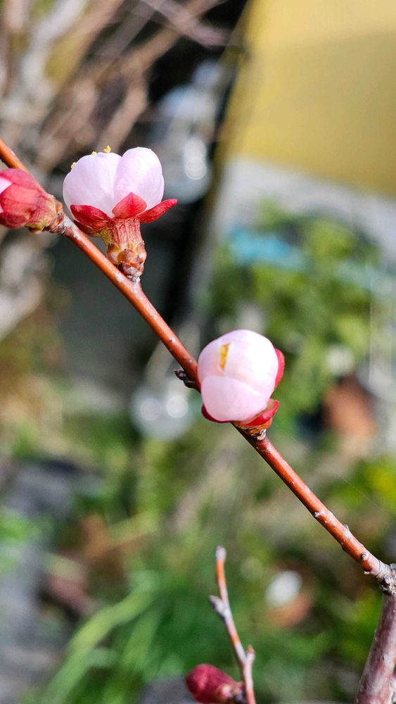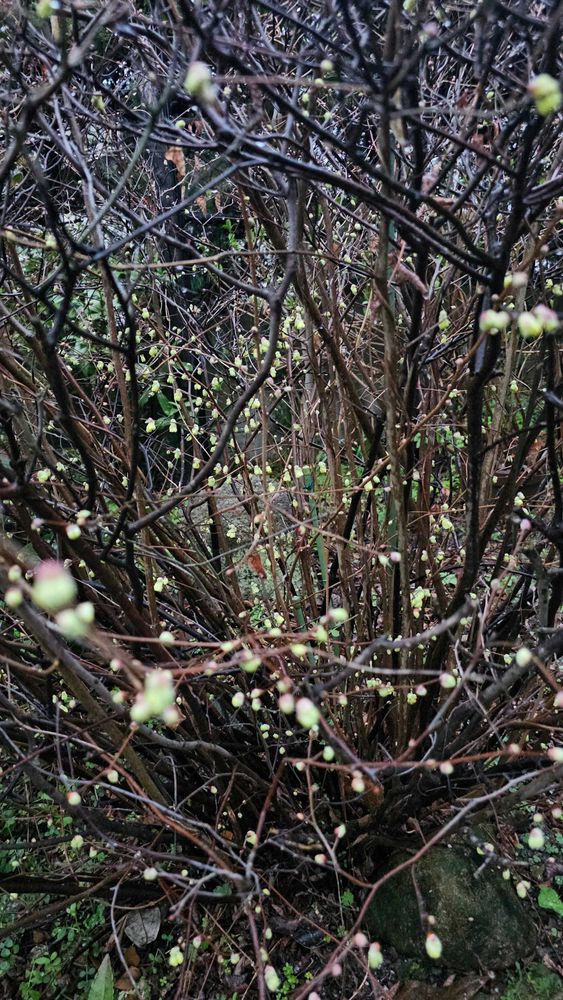 ¹ もう咲かないと思っていた立枯れした梅のヒコバエに薄紅色のつぼみが。