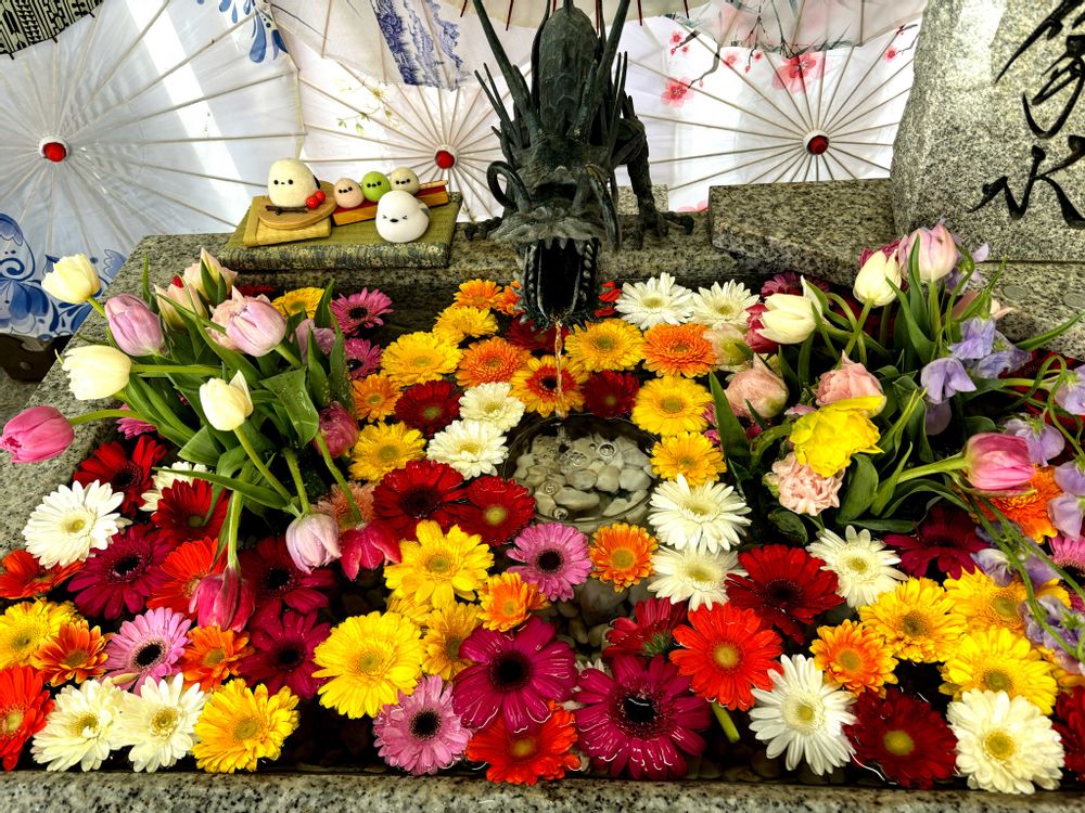 インスタ見ても花手水の情報が出てなかったから凍ってるのかな?とも思いつつ気温高いから行ってみた😄 重かる石🪨も持ちたかったしお願いごとも😅