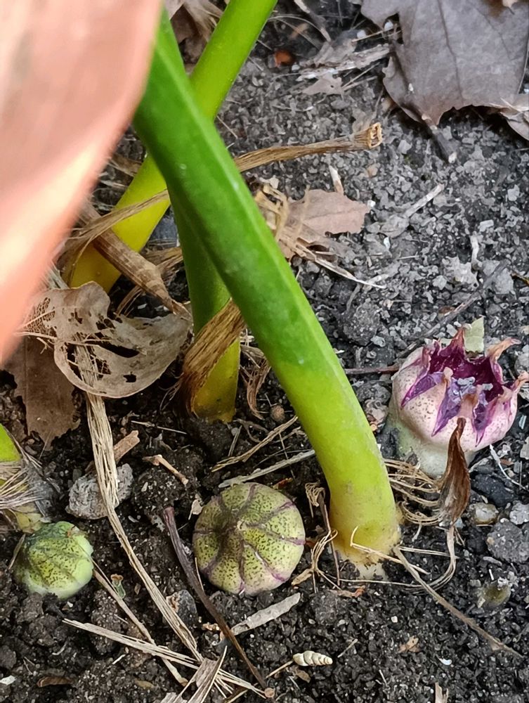 昨年、花が咲いていた場所をガサゴソして😁、ハランの株の根元を覗いてみたら、