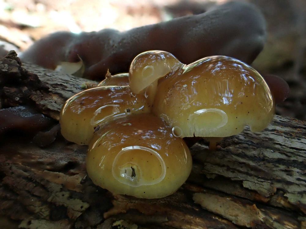 部屋で育ててる😯きのこ、横のべっ甲飴のようなものはなんですか?