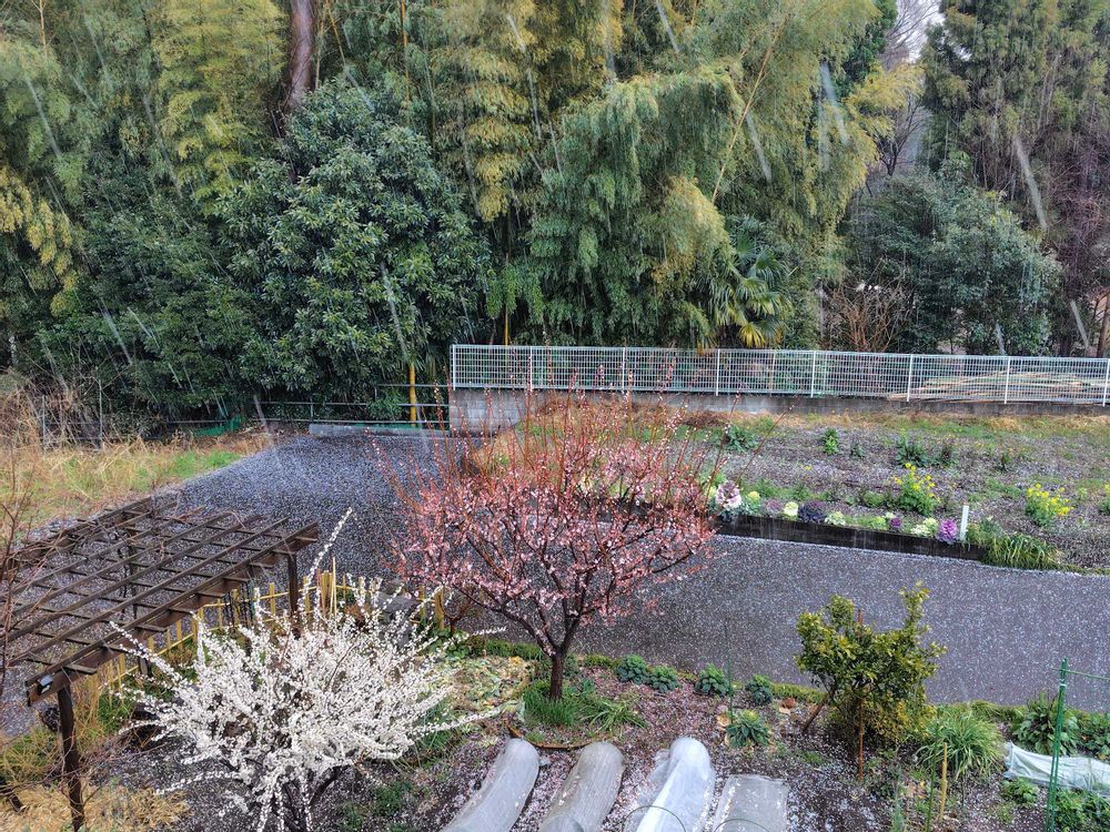 朝から雨が降りドカンっと一発雷がなったと思ったらヒョウが降り雪に変わりました☔⚡︎❄