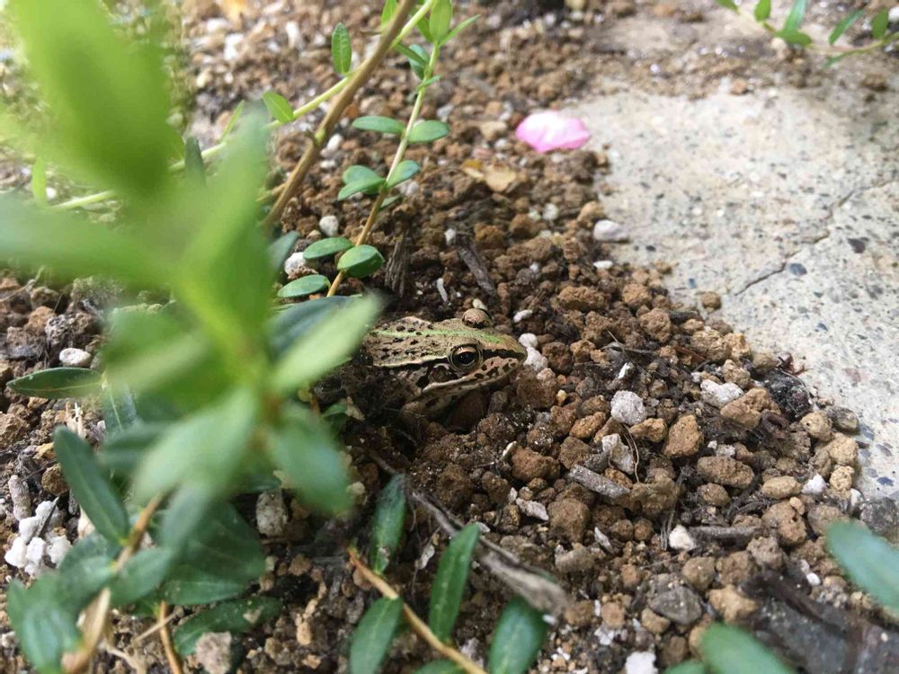 以前、私がこぼしてしまった土に生まれたてカエルちゃんがもぐってました🐸