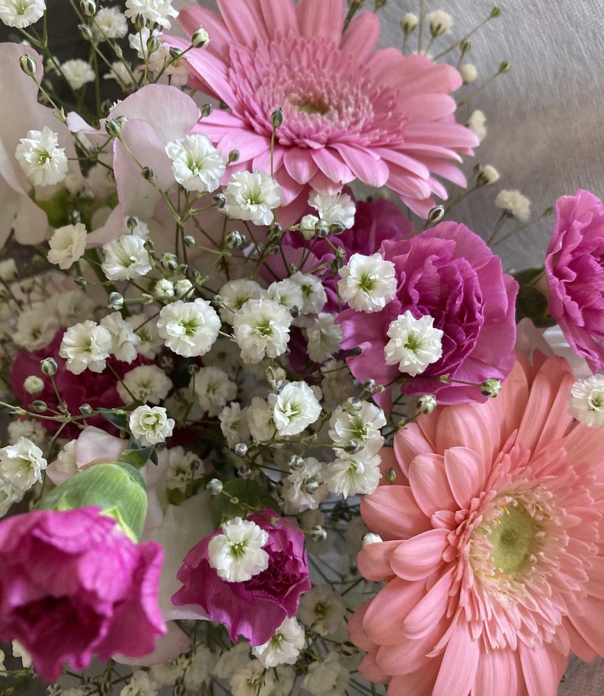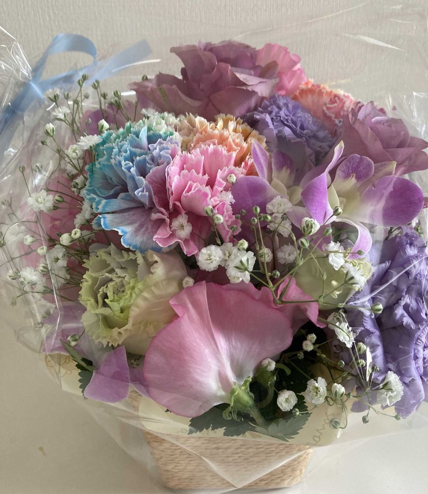 義母からのアレンジ、義姉からのレイ、近所の子からの花束🌸