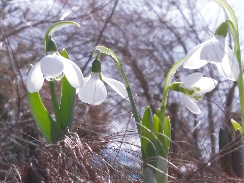 ① 前に投稿したまだ新芽🌱ようだった外置き組のスノードロップ💧が一週間程前から「春がきたよ~」と咲いてくれてます✨