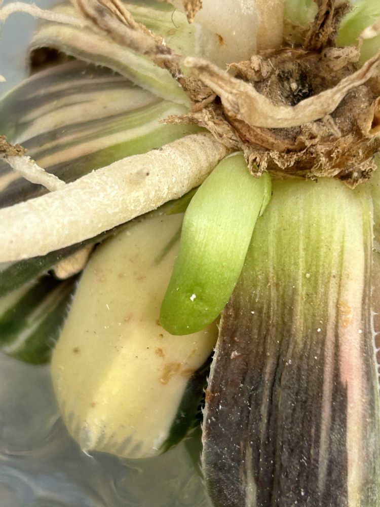 久しぶりに植え替えをしたら、細いですが根もしっかり張っていたし、何より写真の通り子株が出ていました。しっかり成長しているんだなとわかって安心したし、斑入りだったらなお嬉しいです。