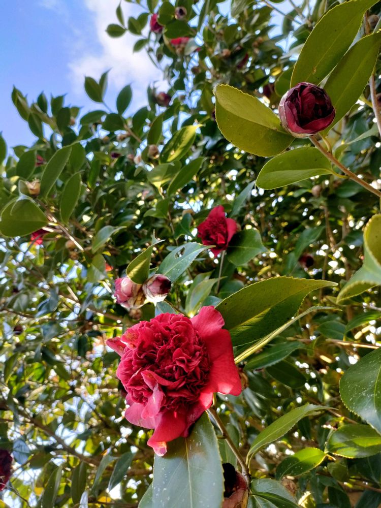 No.713 散歩道の植物とお散歩ちゃん12月①2025/1218白侘助、ビワ、オキザリスバーシカラー・・・